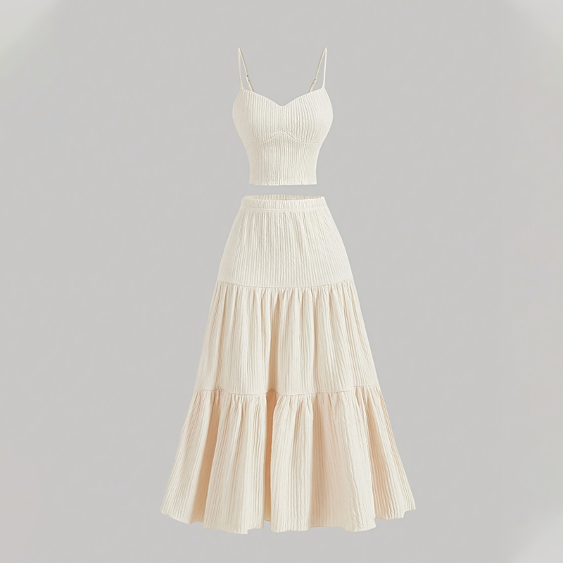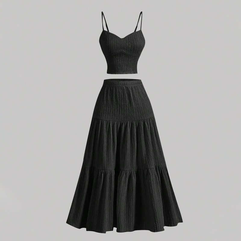 FLATTERING SILHOUETTE - The high-waisted skirt elongates your legs while the cropped top accentuates your waistline. This thoughtful combination creates a beautifully balanced and slimming effect, boosting your confidence with every step.