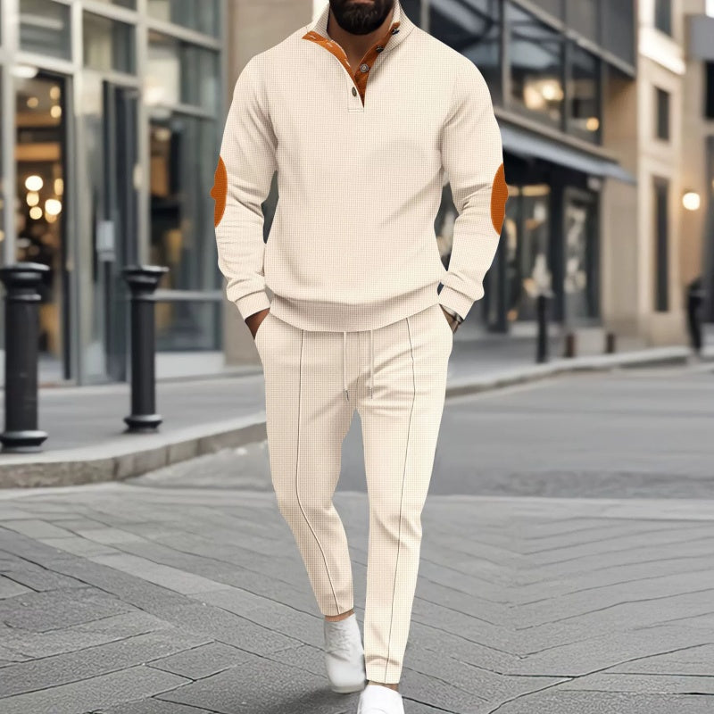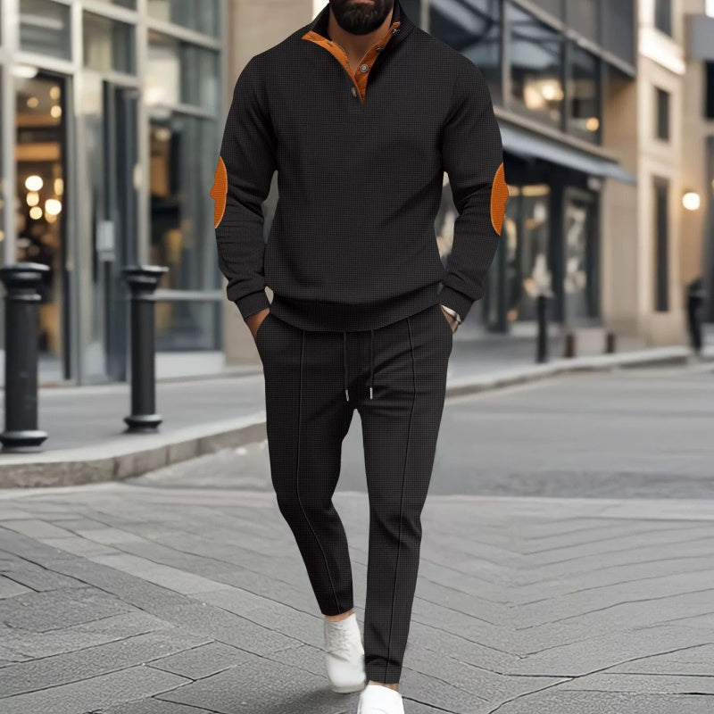 Men's Knit Half-Zip Casual Sweatshirt & Pants Set