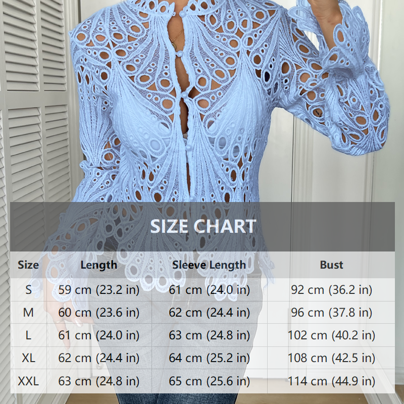 1 x Hollow-out Lace Stand-up Collar Bell Sleeve Shirt