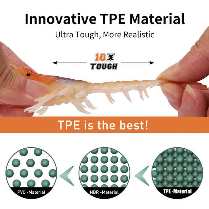 TPE MATERIAL FOR MORE AGGRESIVE BITES: Comaring to the traditional PVC material, TPE formula present the more springy and meaty fishing lures set, which are super appealling for bass trout walleye predators.