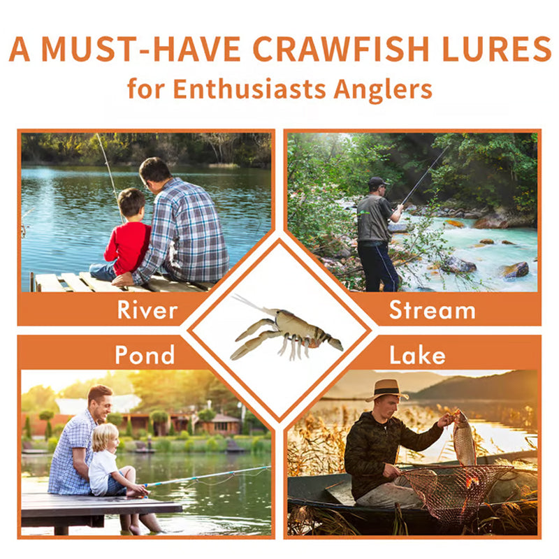 EXCELLENT DESIGNS PRESENTS REAL MEATY CRAWFISH: The hallow body can carry the scents and sink naturally for better visibility for fish; The weedless guard sharp Hook with the UV properties prism egg sac imitate the real crawfish; One pair lifelie pincers create soft turbulence along its path when sinking and float up when sitting on the bottom. All components are manfuactured with first class hand craftmanship.
