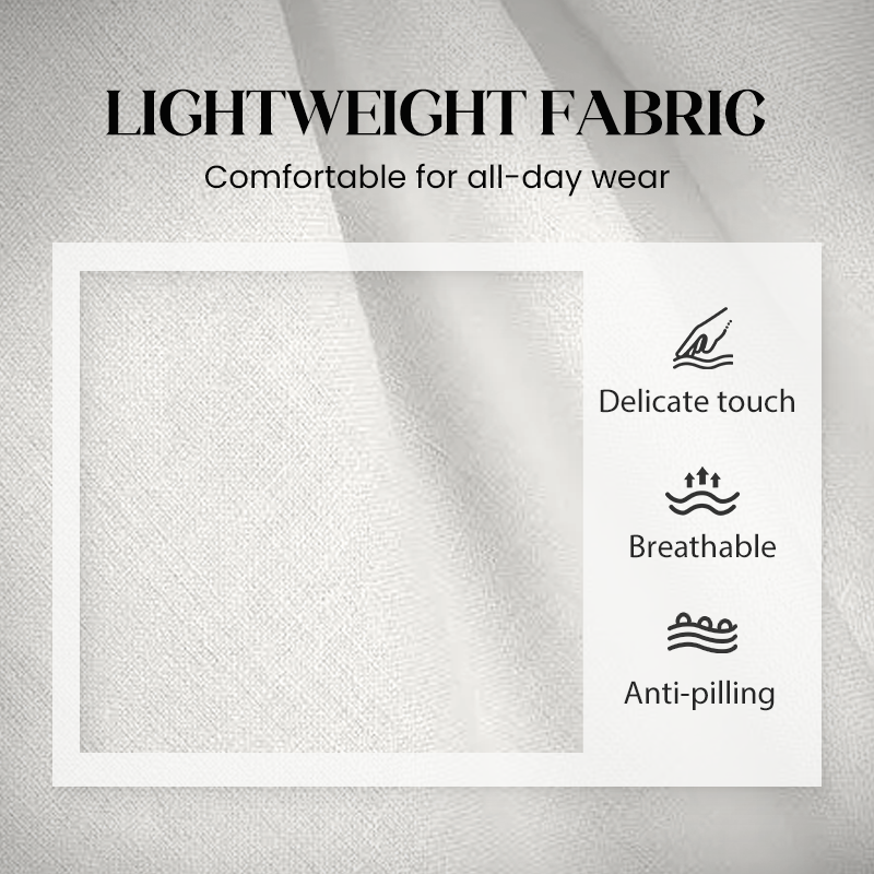 Crafted from high-quality lightweight polyester (mimics linen’s look!) – excellent breathability, wrinkle-resistant, and ultra-comfortable! Wear all day without feeling hot or restricted, and look polished from morning to night.