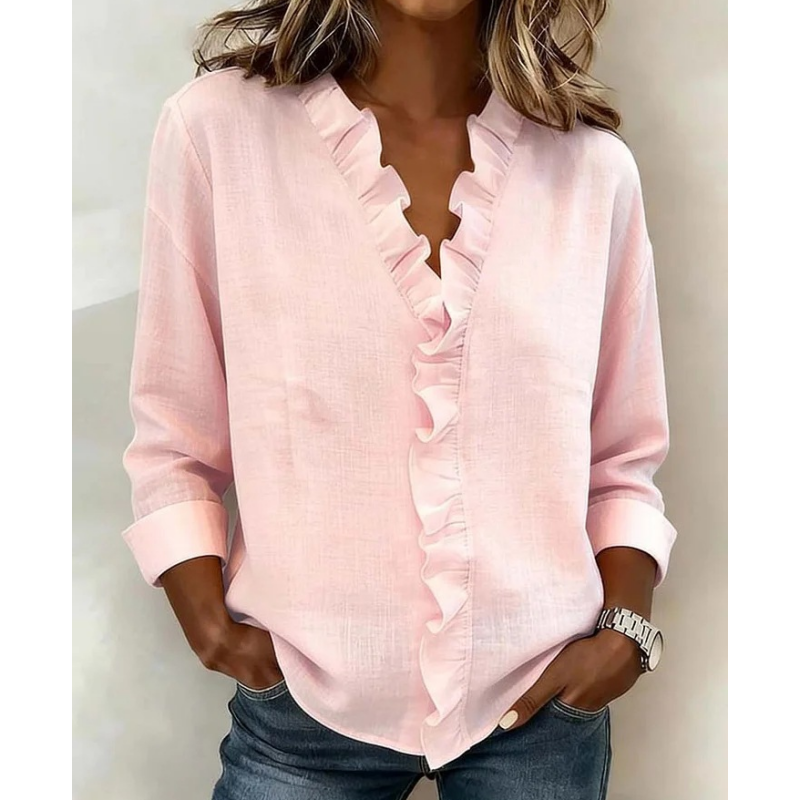 💐 ELEGANT RUFFLE V-NECK: Feminine & Sophisticated