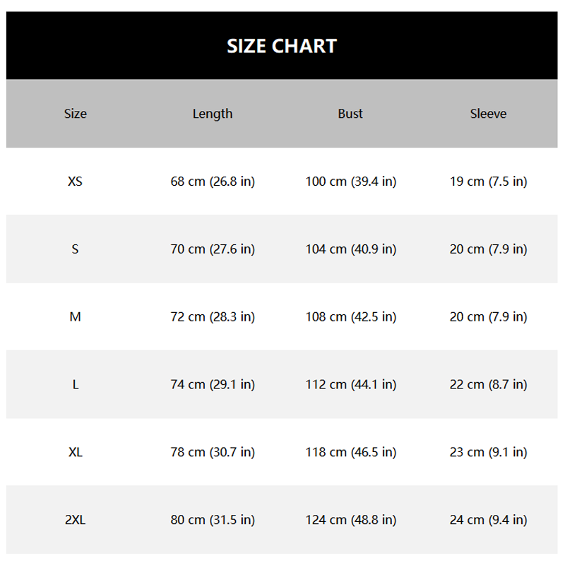 Size: XS, S, M, L, XL, 2XL
