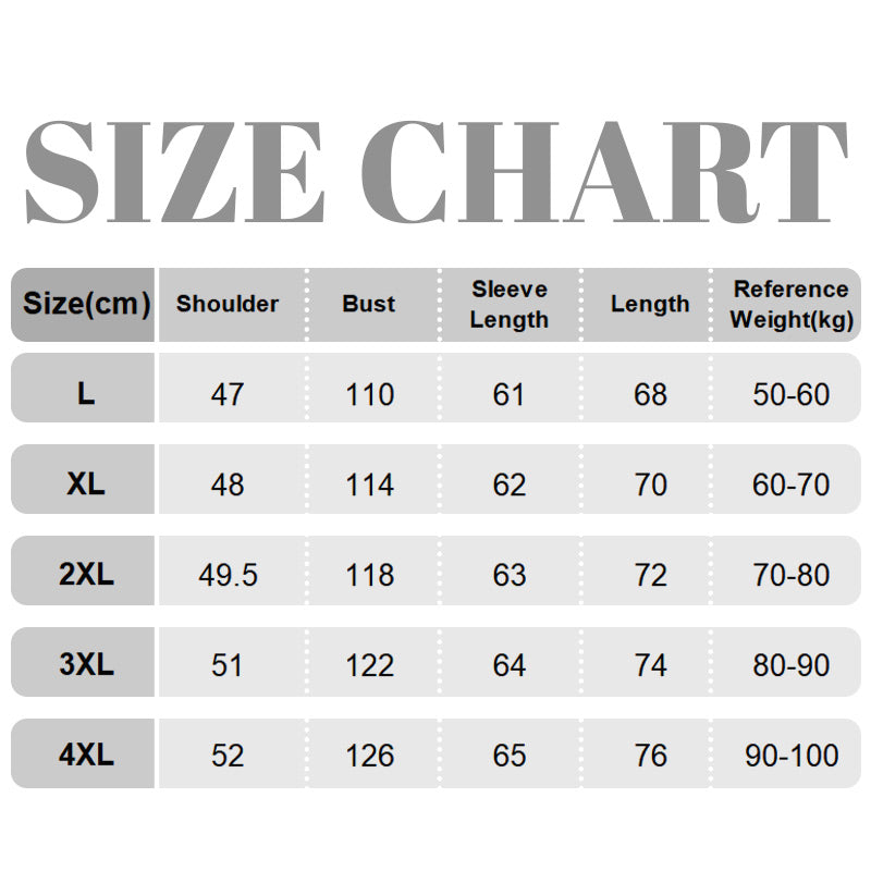 Size: L, XL, 2XL, 3XL, 4XL
