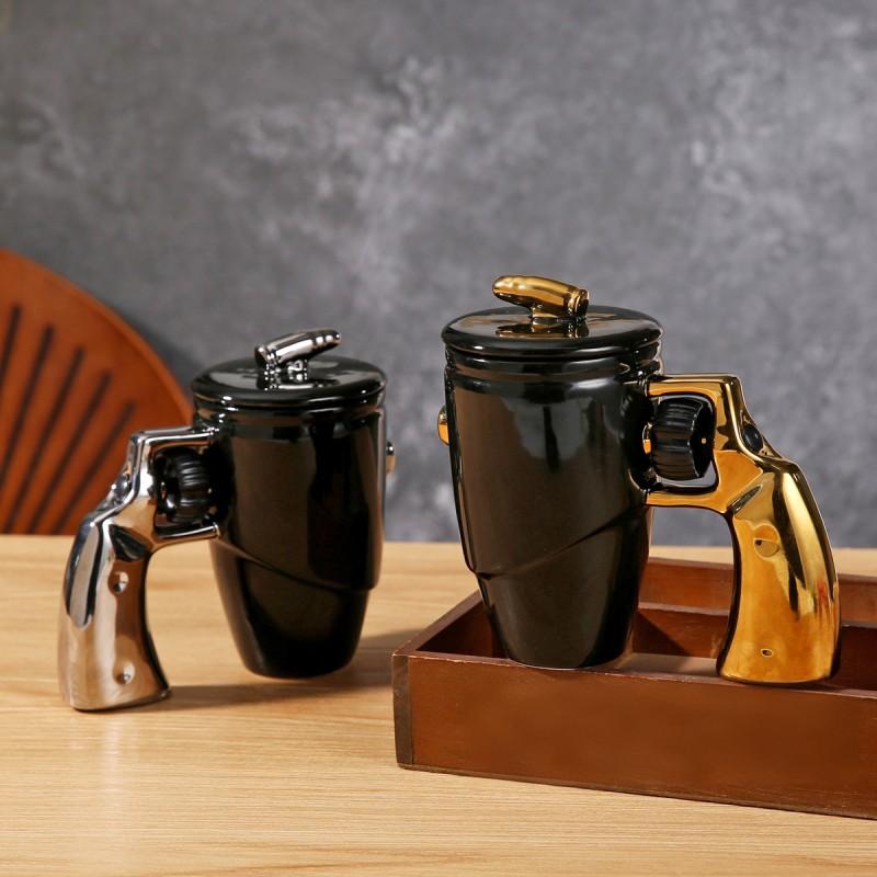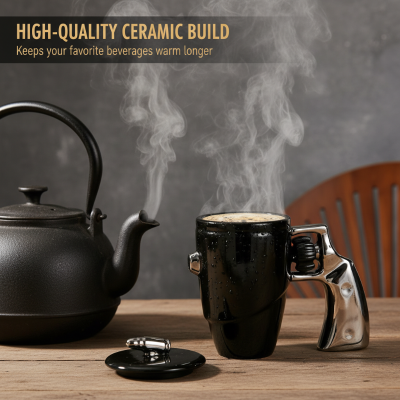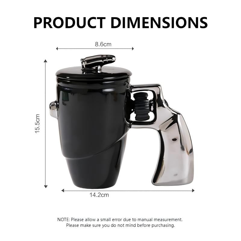 UNIQUE REVOLVER DESIGN: Make a bold statement with this creatively designed mug. The distinctive pistol grip handle is a fantastic conversation starter, adding a touch of edgy personality to your daily coffee or tea routine.
