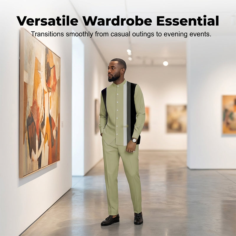 Package Includes: 1 * Men's Striped Shirt & Pants 2-Piece Set
