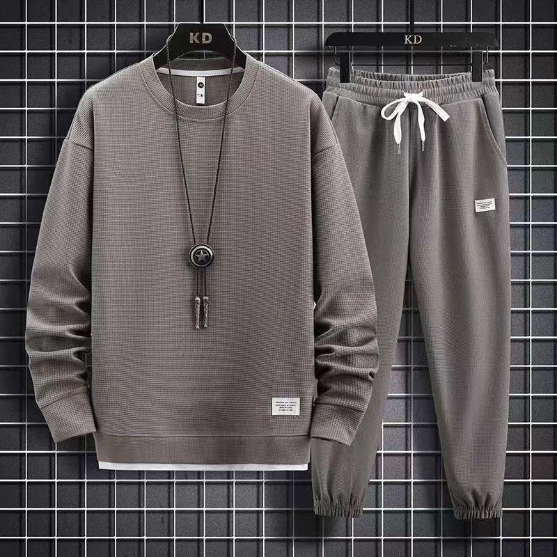 This men's pure cotton leisure sweatshirt set is the perfect choice for those seeking a blend of comfort and effortless style in their casual wear collection.