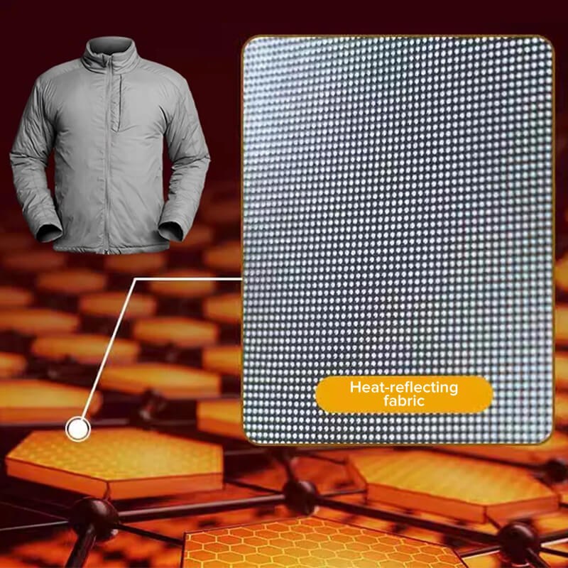 KEEP WARM & COMFORT - Tactical Outdoor Waterproof Warm Reflective Jacket is made of 94% Polyester 6% Spandex and 100% Polyester Filler. Scratch-resistant Polyester fabric and stretch spandex are especially suitable for outdoor activities with extreme flexibility and comfort. Lining with Heat Reflective Technology is a specialized warming technology that improves warmth compared to ordinary cold weather materials. The silver heat-reflective polka dot material reflects body heat efficiently while the breathable mid-layer locks body heat between the garment and the body, bringing you comfort and warmth.