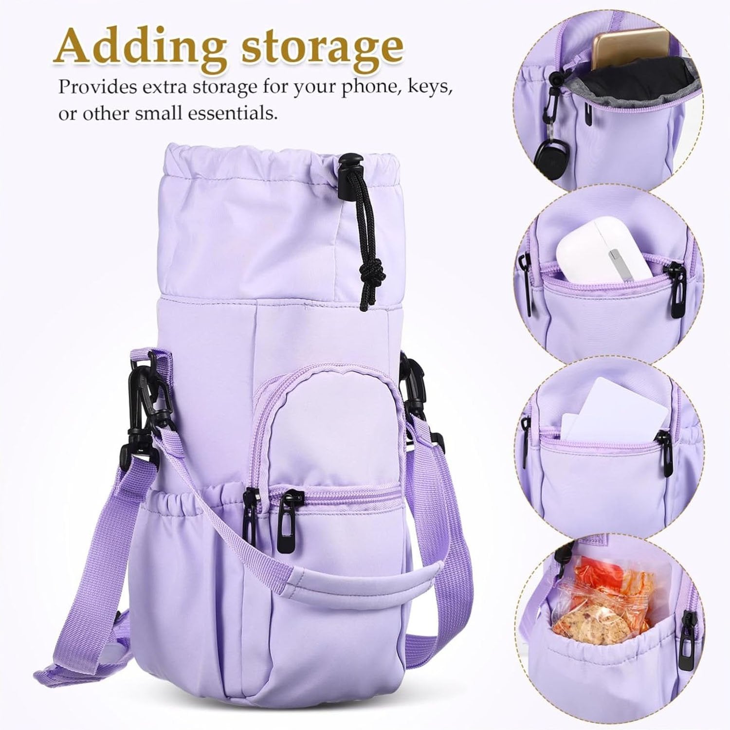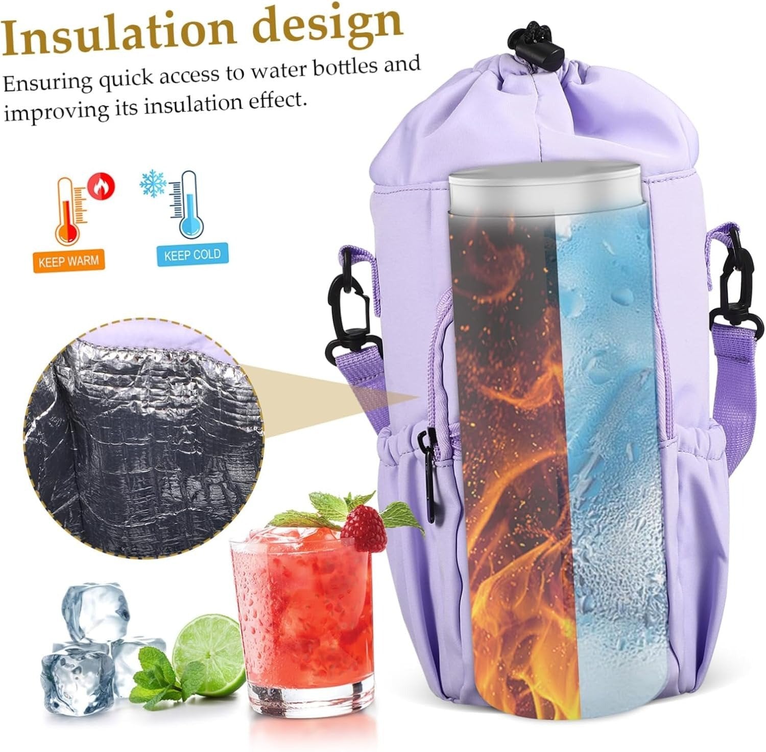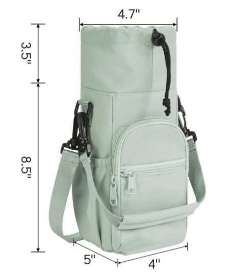 "This water bottle bag, with dimensions of" 4.7x3.5x8.5x 5x4", fits your bottle perfectly while offering space for small essentials. Whether you're at the gym, hiking, or out and about, it combines convenience and style, keeping you refreshed anywhere you go. 💧🎒"