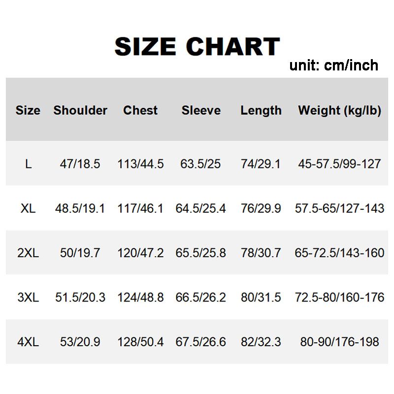 Size: L, XL, 2XL, 3XL, 4XL
