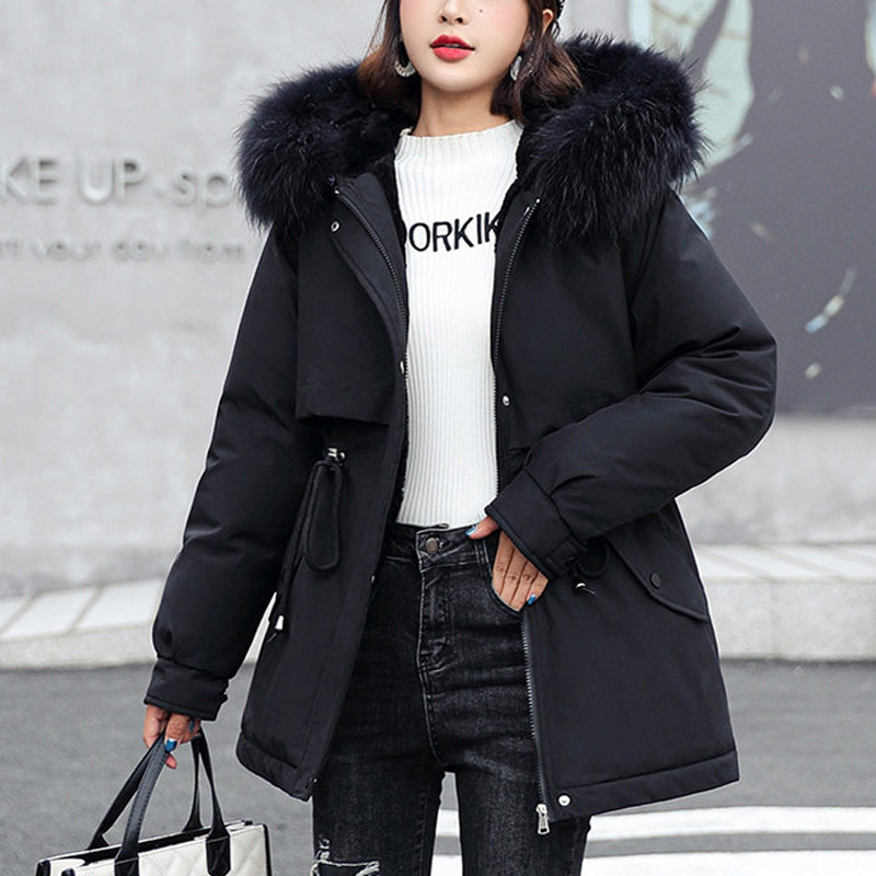 1*Woman’s Winter Loose Hooded Synthetic Fleece Thickened Parka Coat