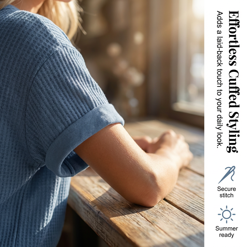 CUFFED SHORT SLEEVES - The cuffed short sleeves provide a polished, put-together detail to this casual top. They add a subtle structural element that elevates the overall design, making it suitable for various occasions.